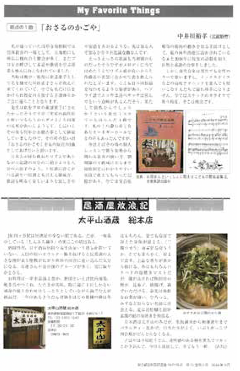 渋谷区歯科医師会会員の先生は、多彩な趣味をお持ちの方が多いので、ぜひよろしくお願い致します。また、同ページの下段には、「居酒屋放浪記」を設けました。行きつけの居酒屋やお食事処、BARなど、委員会でよく行くお店や地元の美味しいお店をご紹介いただけませんか?広告費用は、いただきません。ご自身でお店の承諾と数枚の写真を取っていただき、写真を含めて300~500字程度でお書きいただきたく思います。投稿規定ついては、会誌3月号のP.49、「会員のひろば」は、P.12をご参照ください。